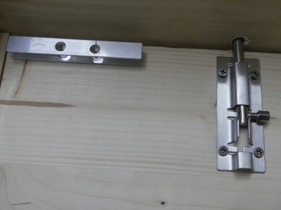 Der Riegel an der Klappe stößt einfach in eine Aussparung in dem Dach und verschließt