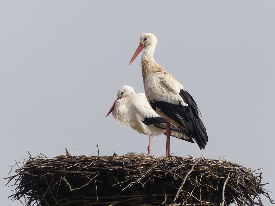 Kasimir und Lotta hatten 2021, 2022 und 2023 jeweils zwei und 2024 vier Junge großgezogen. Aktuell hat Kasimir den Horst angeflogen. Grundvoraussetzung für eine Ansiedlung ist nämlich, dass ein ausreichendes Nahrungsangebot im Umkreis von 5 km als ausreichend angesehen werden kann für die Aufzucht der Jungen. Weißstörche sind Opportunisten, was die Nahrungsauswahl betrifft. Sie können sich von Mäusen, Fröschen, Würmern, Schnecken, Wühlmäusen, Schlangen und Heuschrecken ernähren. Auch Aas und Nahrungsabfälle werden nicht verschmäht.